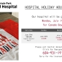 BC Day 2019 Hospital Hours